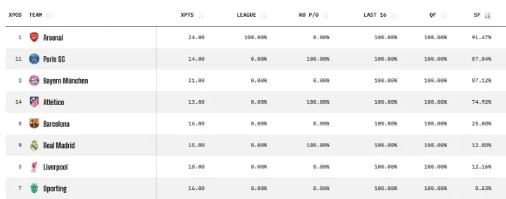 kaiyun-OPTA更新晋级欧冠4强概率:利物浦12%,皇马13%,巴萨25%